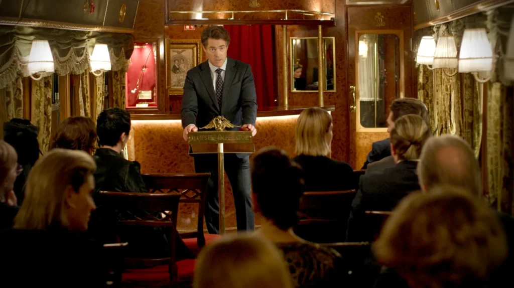 THE TRAIN itself becomes a character. Polished wood, crystal glassware, private compartments where anything could be happening behind closed doors. It’s the kind of old-world luxury that masks new-world power plays. Everyone on board has money, connections, or secrets worth protecting, and the confined space means you can’t just walk away from a bad situation. You’re locked in until the next stop, and by then it might be too late.